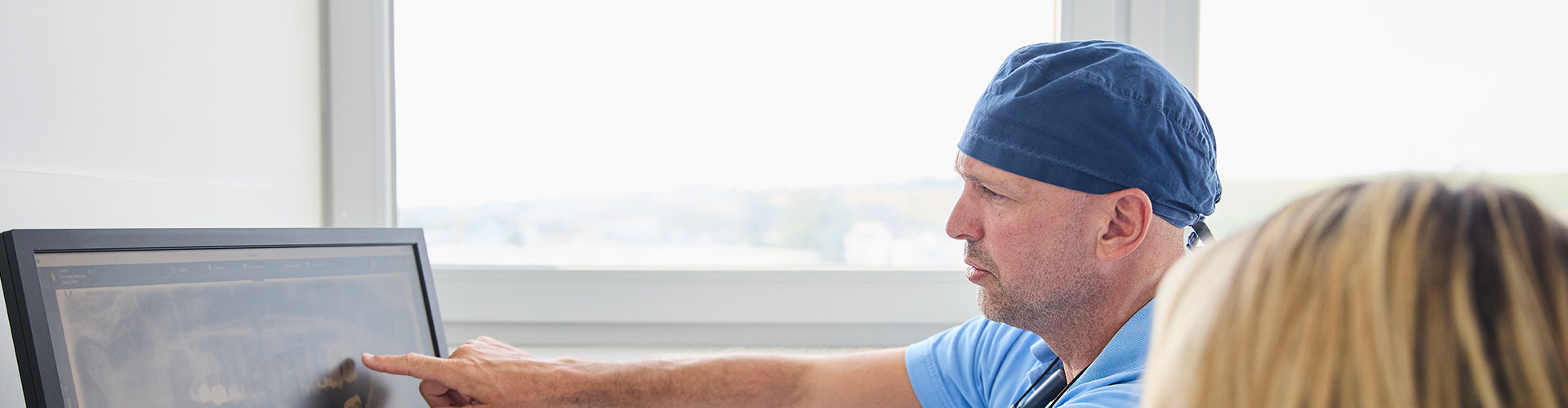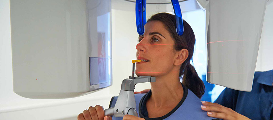 - Wir untersuchen Sie und achten auf mögliche Anzeichen der CMD, z. B. ein Reibe- oder Knackgeräusch, wenn Sie den Unterkiefer bewegen, eine eingeschränkte Mundöffnung, Muskelverspannungen und Beschädigungen an den Zähnen.