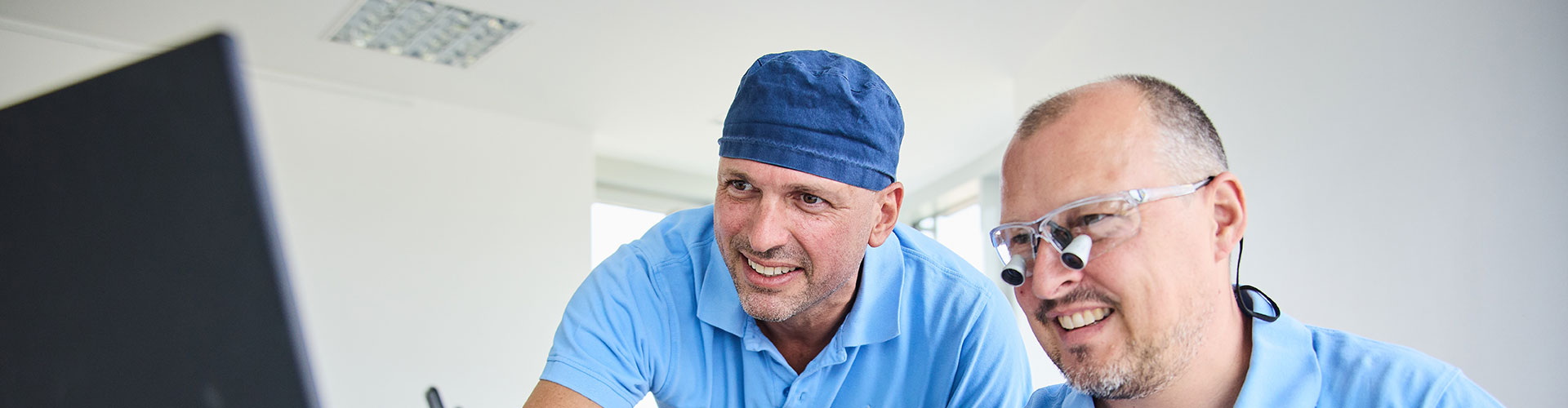 In den meisten Fällen ist es sinnvoll, den Zahnersatz über Implantate (künstliche Zahnwurzeln) zu verankern. Das ermöglicht eine Schonung von gesunder Zahnsubstanz der Nachbarzähne und insbesondere für Vollprothesen im Unterkiefer oft einen besseren Halt. Wir untersuchen gerne, ob Implantate bei Ihnen empfehlenswert sind.